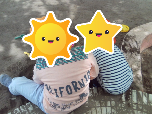横に並んで一緒に砂場遊びを楽しむ姿がとても可愛らしかったです♪