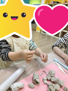 今日のワクワクの様子です☆ ワクワク 2025.04.28 こんにちは。 今日はお友だちの発案で、『だるまさんがころんだ』をやりました。 「だ~る~ま~さ~ん~が…」 「ころんだ!」 にっこにこの笑顔です。 そして粘土や個別もしました。 粘土では伸ばしたりちぎったり… (この棒中に入りそう…?!)と気づいたお友だち。 「…mmm?」 入った♪よく見て、がんばったね。 個別の様子です。 穏やかに過ごしました。 ワクワク上石神井