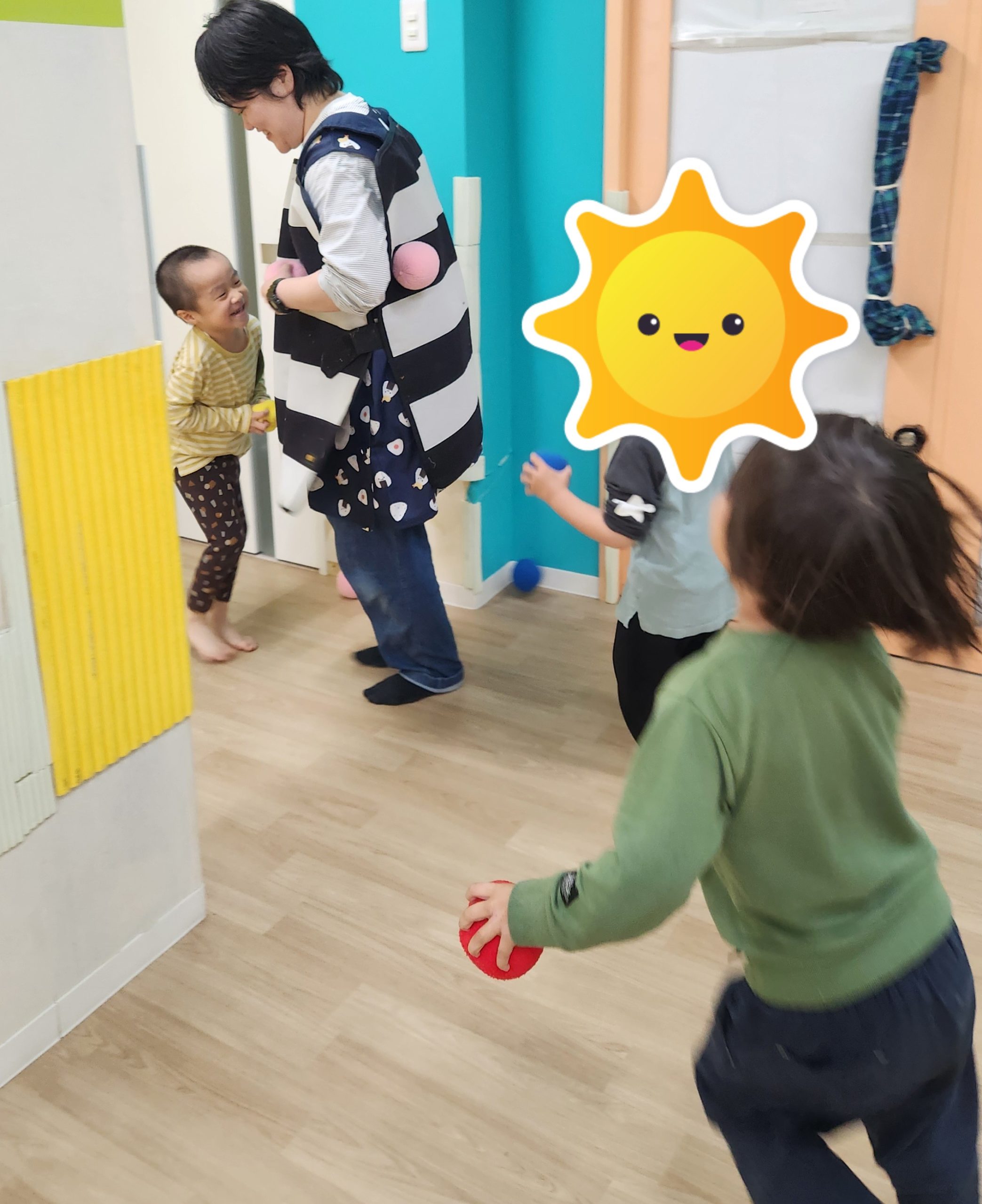 今日はみんなでペガーボールをした後に、傘を使って玉入れを楽しんでいきましたよ!!