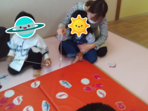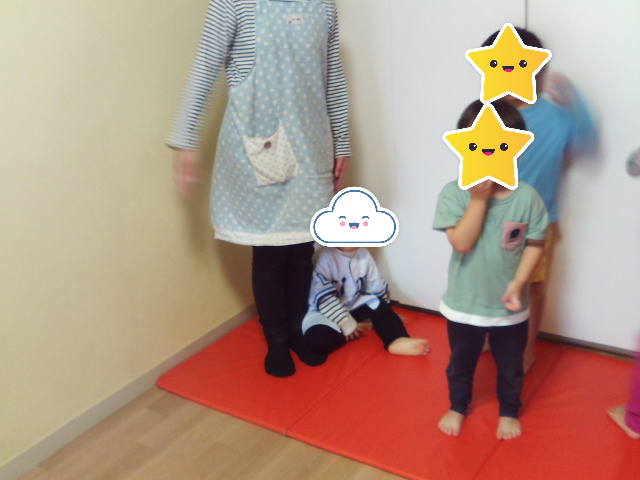 音が止まると何色のマットの乗ったらよいのかよく聞いて動く姿がありました✨