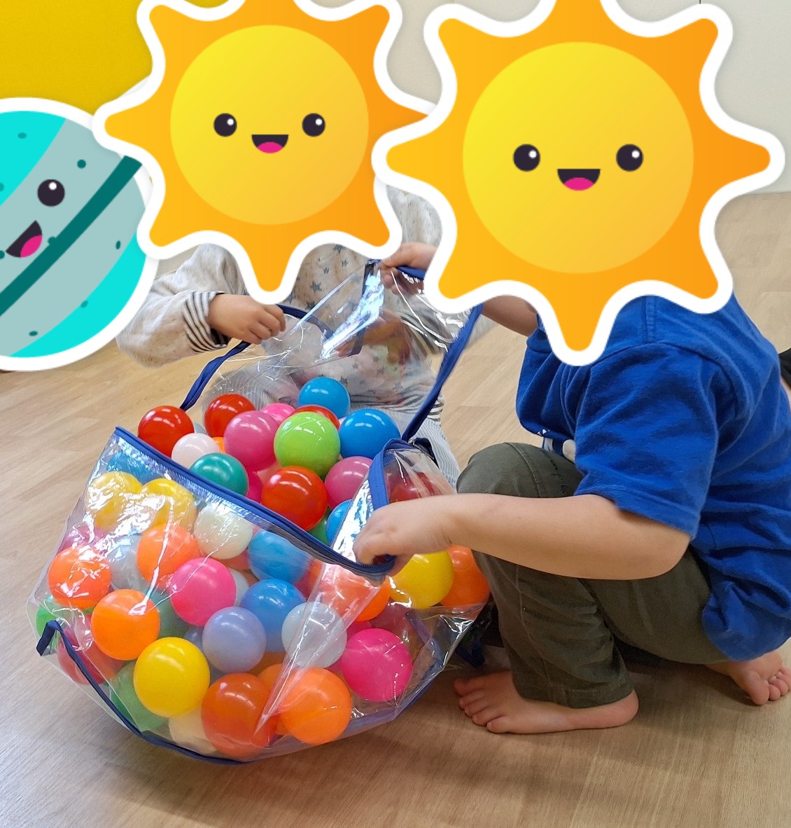 その後はボール遊びをしました。大きなボールでキャッチボールをしたり、体をボールに乗せて体幹遊びをしたり、小さいボールを筒の中にたくさん入れて転がして遊んだりしました。後片付けを頑張りました☆