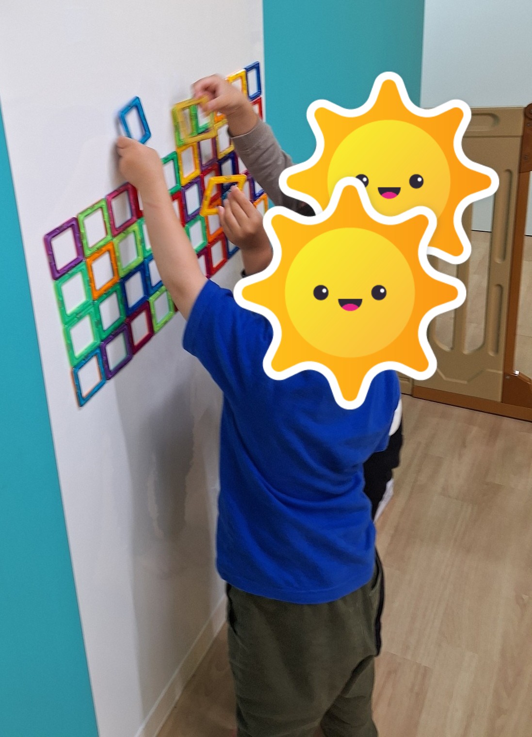 午後は、個別とコーナー遊びをしました。コーナー遊びでは、磁石とペッタブロックをしました。