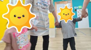 今日も「むっくりくまさん」をしました。今日のお友だちは小さい子が多かったので、輪になって歩いたり、追いかけられ逃げたりすることを楽しめるようにしていきました。