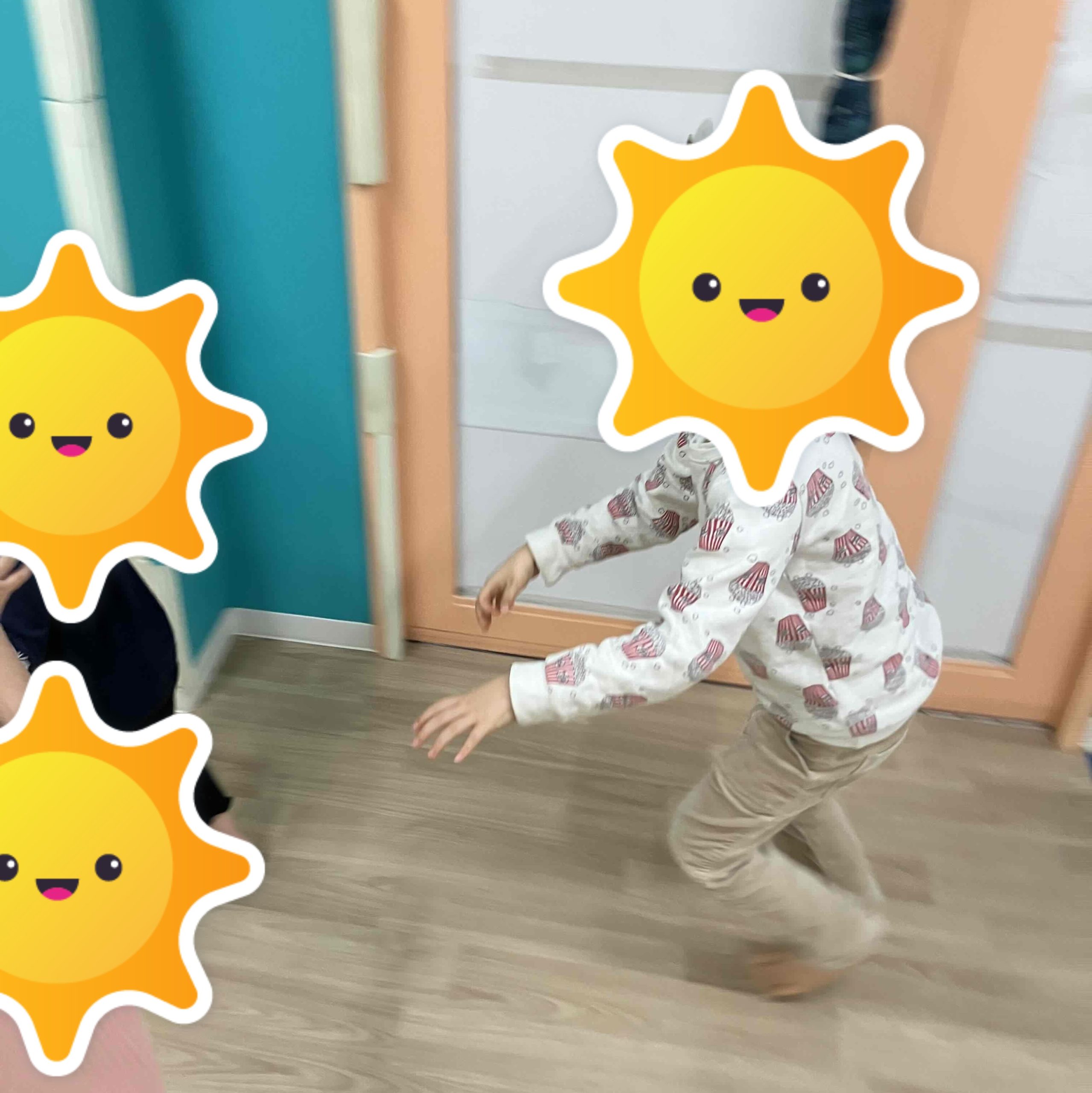 年上のお友だちがクマ役をやりたいと立候補してくれたので、スタッフは小さいお友だちと手をつないで輪になり一緒に逃げることが出来ました。クマ役のお友だちは捕まえ方ががとても上手、優しく怖くないようにしてくれたので、楽しんで走ることができていました。