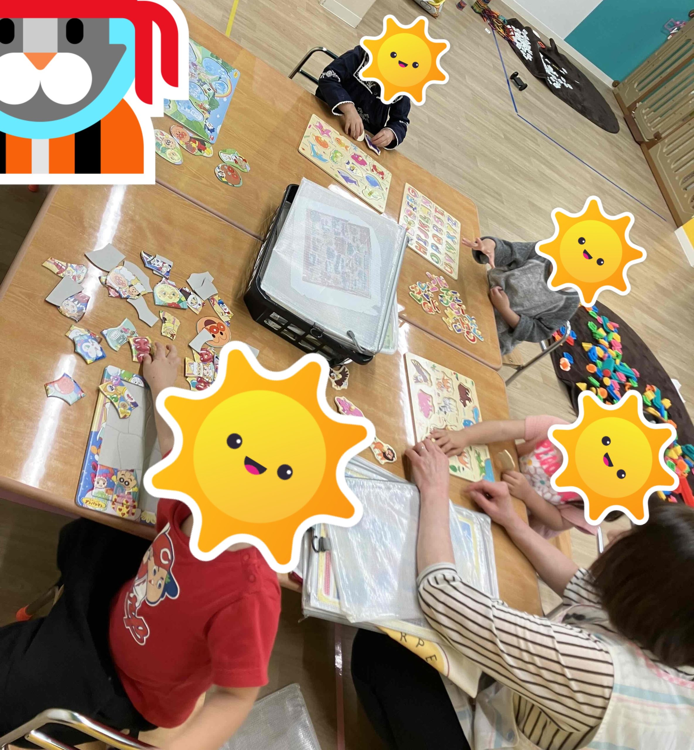 午後は、個別とコーナー遊びをしました。コーナー遊びでは、磁石、ペッタブロック、パズルをしました。それぞれの興味により、集中して取り組んでいましたよ✨