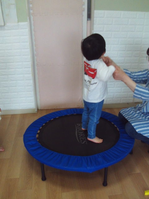 トランポリン跳んだよ♬ ワクワク順番に並べたね♪ 2025.05.12 こんにちは 今日の朝の会では、「すうじの歌」を歌いました 元気な歌声と一緒に楽しく数字も覚えています! サーキットは、トランポリンをしました 職員の顔を見ながら、一緒に「1・2・3…」と 数えて跳びました!(^^)! 順番に並ぶお約束もきちんと出来ました 順番に並べたね♪ トランポリン楽しいね! まつだいら