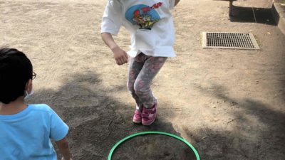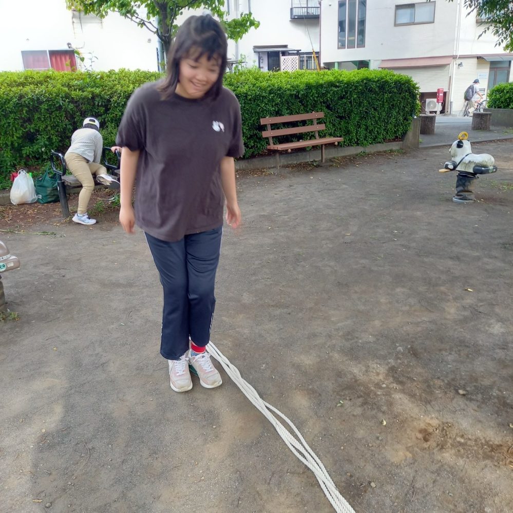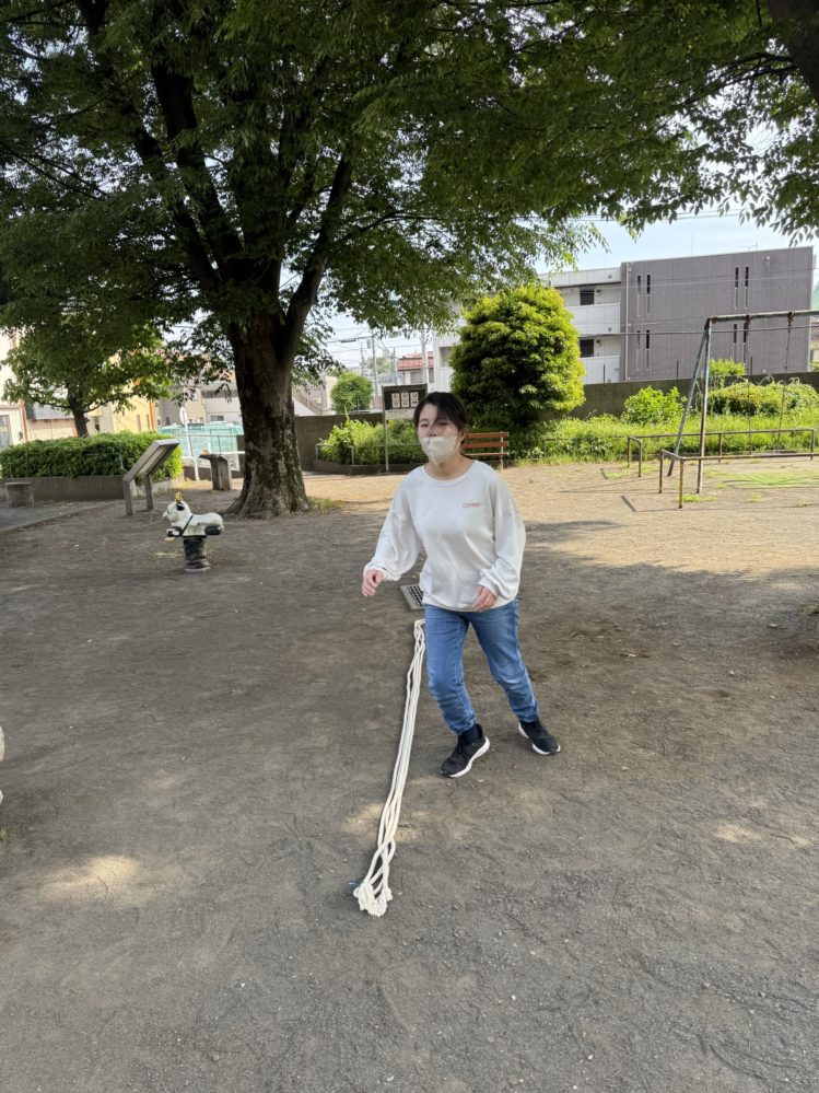 5月14日(水)のりぼんUはA・Bグループに分かれて室内では紙遊び、公園ではロープを使ってジグザグジャンプをして体を動かしました😊✨
