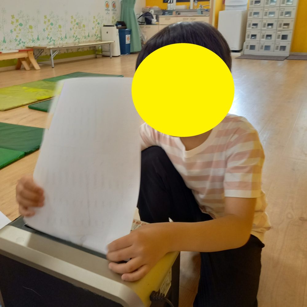 紙遊びではシュレッダーをつかったりお絵描きや飛行機を折って飛ばしたりして楽しい時間をすごしました🎵シュレッダーでは紙がのみこまれていくのが楽しいのか集中してやるお友達が多かったです!