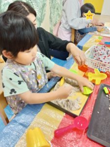 月曜日のりぼん りぼん 2025.05.20 こんにちは! 5/12 月曜日のりぼんでは 午前中は電車を見に行き、 午後はサーキットをしました! 線路の近くまでしっかり手をつなぎ歩きました。 電車が通るたびに「ばいば~い」と手を振るお友達です。 りぼんに帰ってきてから「電車何個見たの?」と聞くと 元気いっぱいに「3本!!」と教えてくれました(*^-^*) お部屋の中では砂粘土をしました。 午後はグループに分かれてお散歩とサーキット! よく歩き、よく体を動かしました! りぼん