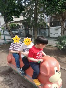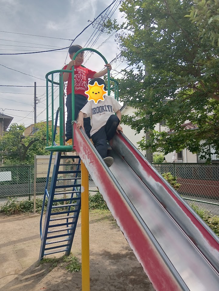 木曜日のりぼん りぼん 2025.05.27 こんにちは! 5/15 木曜日のりぼんは 保谷第二公園に行きました。 おともだちがついて来ているかなと確認中… 一緒にすべるのが楽しいようです(*^-^*) おともだちとの関わりが増えてきて成長を感じます…! お部屋では魚釣りをしたりおままごとをして過ごしました。 りぼん