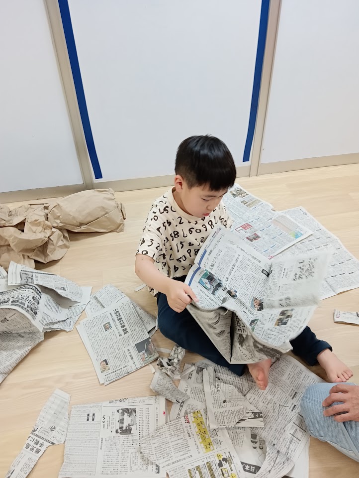 木曜日のりぼん りぼん 2025.06.05 こんにちは! 5/22 木曜日のりぼんは、新聞紙ちぎりをしました。 まずはグループに分かれてお散歩 手をつないでしっかり歩きました。 おやつを食べて、みんなで新聞紙ちぎり📰 ちぎる前にテレビ欄を探しているおともだちです。 シャワーのように新聞紙を振らせて大はしゃぎでした(*^-^*) りぼん