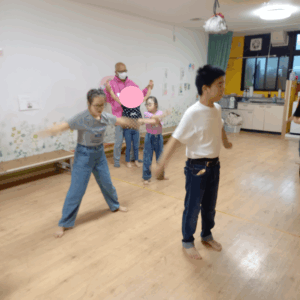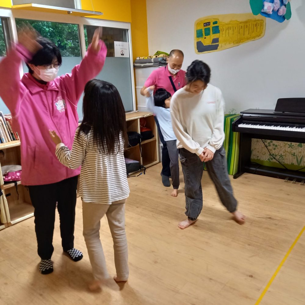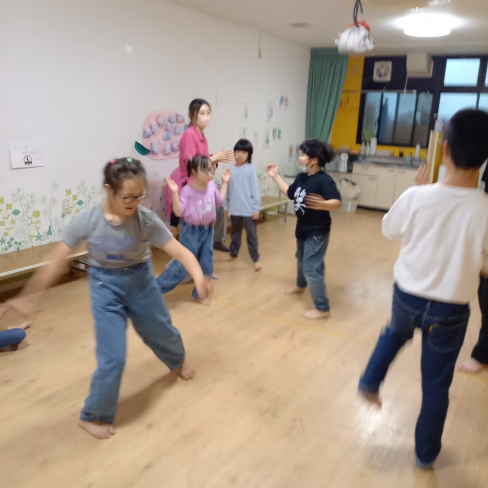 ソーラン節ではかっこよく踊り、エビカニクスでは元気に踊り、さんぽでは曲に合わせて歩いたりジャンプをしたりとたくさん体を動かしました!(^^)!