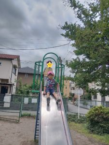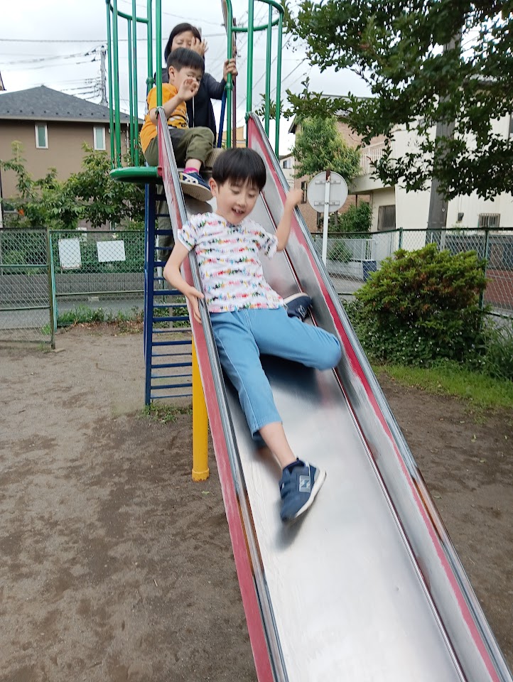 初めは1人では滑れなかったすべり台も