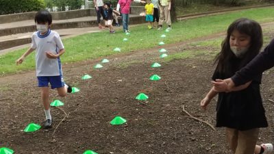 後半はいつもの公園に行きボール渡しをしました!フープの中にそれぞれ立って正面を向いたまま体をひねって隣のお友達へボールを渡しました!体をひねって上手にできる子もいました🎵今度は斜め後ろなどいろんな方向にひねりながらボールを渡す運動もしてみようと思います😊✨