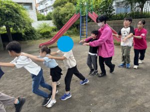 6月16日(月)のりぼんUは、ムカデ競争をしました。