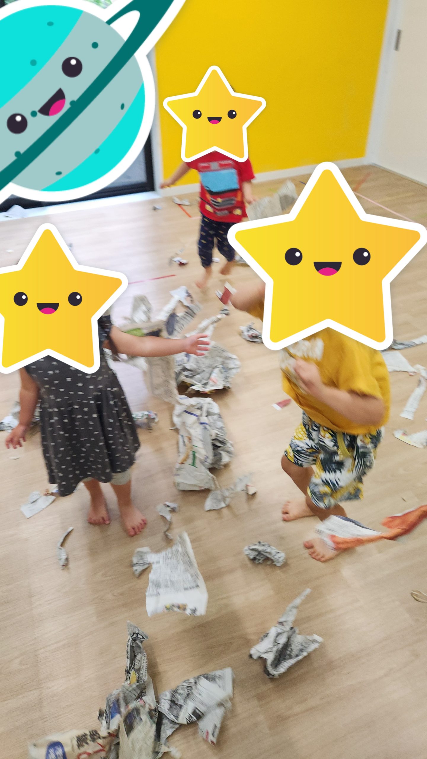 ジャンプをしたり、紙吹雪したり、工作したり…