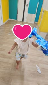 その後は新聞紙遊びです。