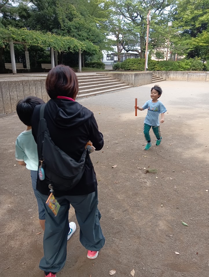 広い公園でバトンリレーをして思いっきり走りました!