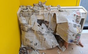その後は新聞紙遊びをしました。ちぎったり、散らしたりを楽しんでいました。今日はみんなでお家を作って入ったり出たりをしながら、やり取りを楽しむ姿が見られ、大きなお友だちが小さいお友だちに優しくしてくれている様子がかわいかったです。