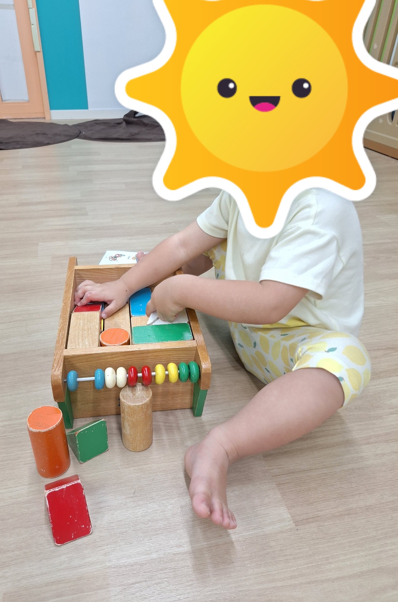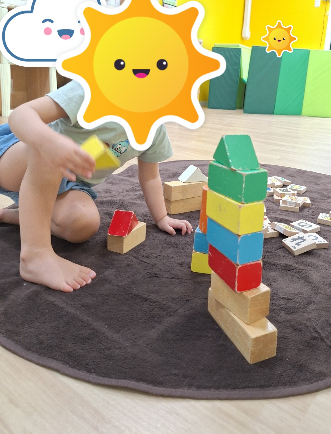 パズルのように難しい積み木の片付けを頑張りました☆