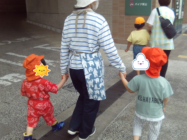 今日はお散歩に出かけました。お店屋さんに飾ってあるお人形を見たり、ビルの上の階から景色を見たりしました。ビルの中に入ると「涼しい~。」と気持ちよさそうな表情を浮かべていました🍦