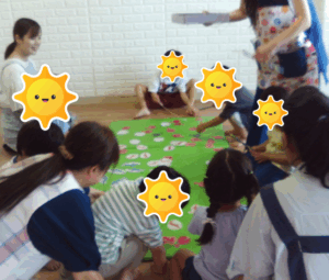 今日の室内遊びは、『椅子に座れるか?』