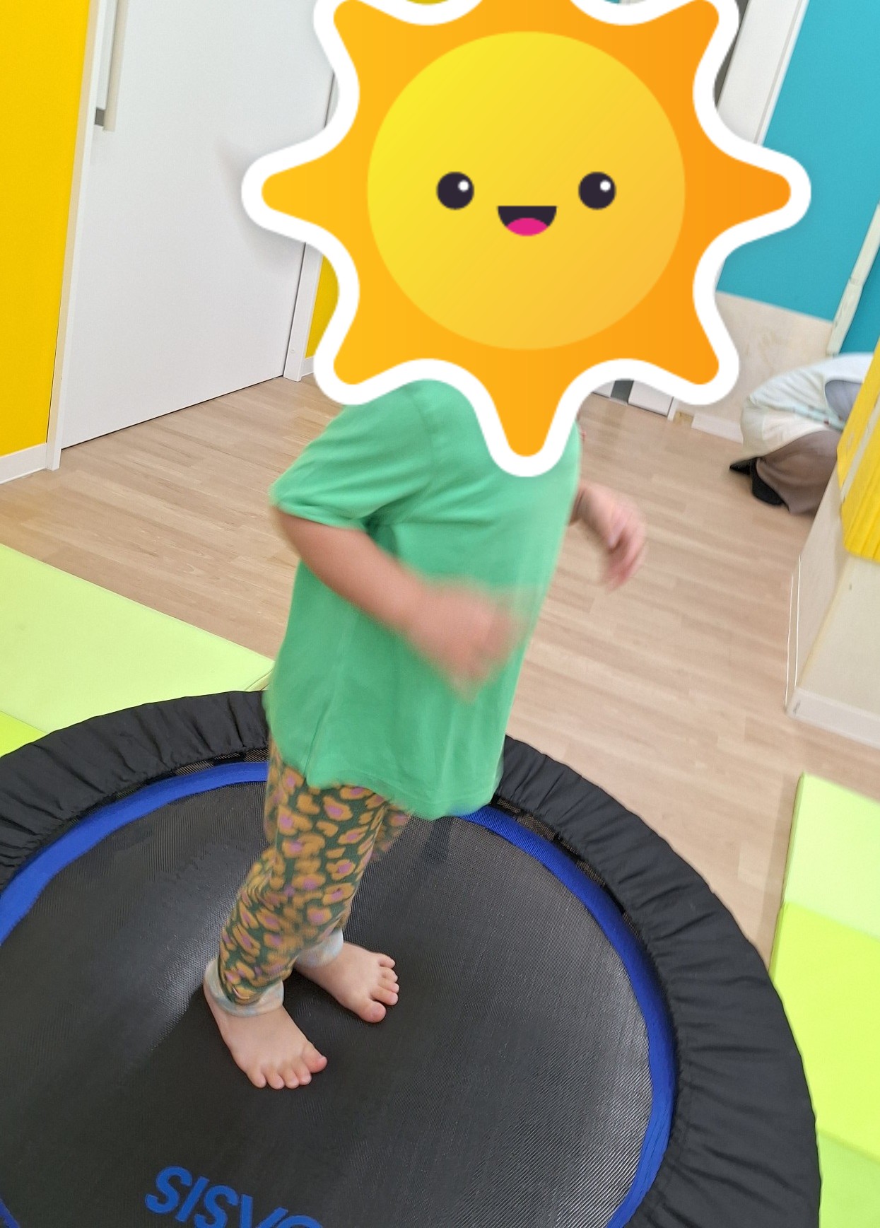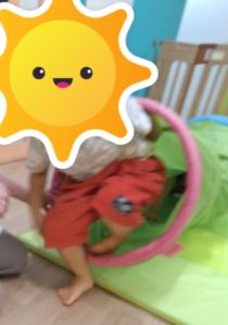 今日も昨日に引き続きサーキットをしました。今日は、バランスストーン、トンネル、トランポリンをしましたよ。バランスストーンでは、足をしっかりと動かして渡ることが出来ていました。トンネルくぐりも楽しみ、トランポリンはたくさん跳んでジャンプで着地していましたよ。何度も行い体を動かすことが出来ました。