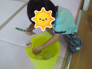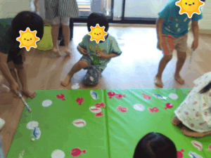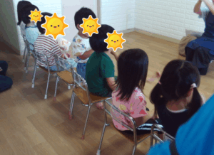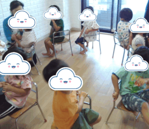 午前中の室内遊びは、椅子に座れるかな?ゲームを