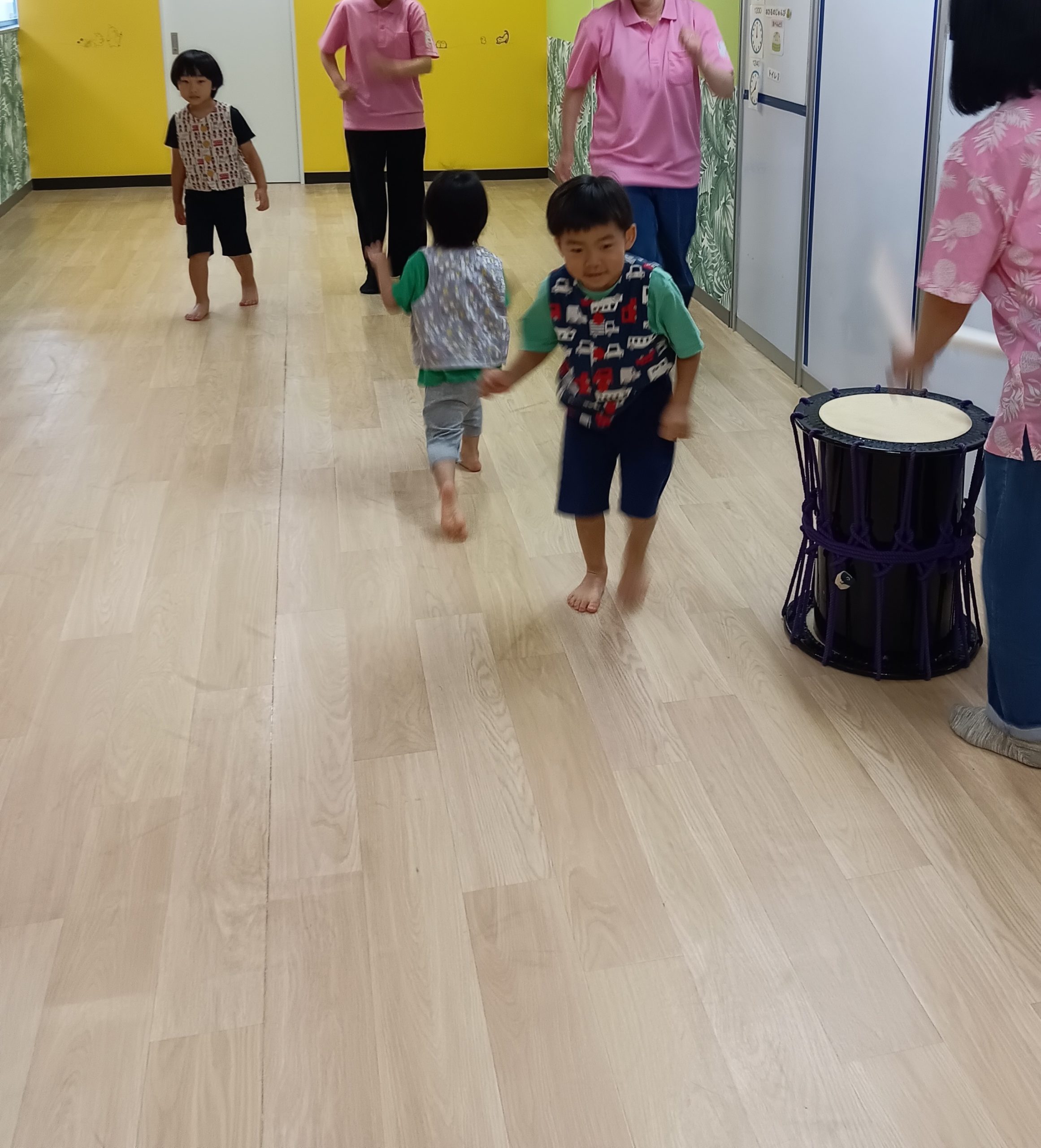 太鼓に合わせて早歩きしたり!だんごむしになったり!