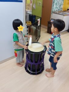 午前は太鼓とピアノを使ってリズム遊び♪