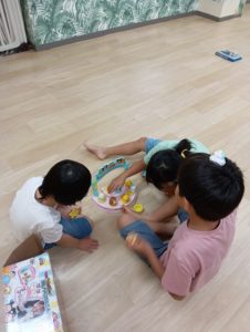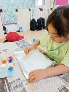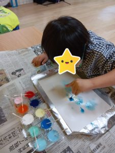 火曜日のりぼん りぼん 2025.07.10 こんにちは! 7月8日火曜日のりぼんは 午前はサーキットと工作 午後は自由時間を過ごしながら順番に工作に取り組みました。 まずはサーキット! 工作はぬれた画用紙に絵の具を綿棒でちょんちょん きれいな作品が出来上がりました( *´艸`) 午後は自由に好きなおもちゃで遊びながら 順番に工作に取り組みました! りぼん
