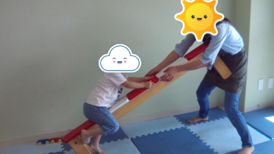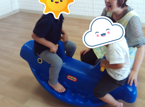 自分で身体を揺らしてシーソーを動かしたり、ニコニコしながら乗ったりと