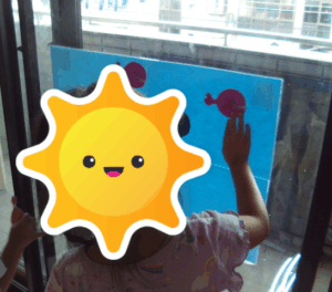 部屋の中に貼ってあるきんぎょを探して取り、水槽にかえしてあげる