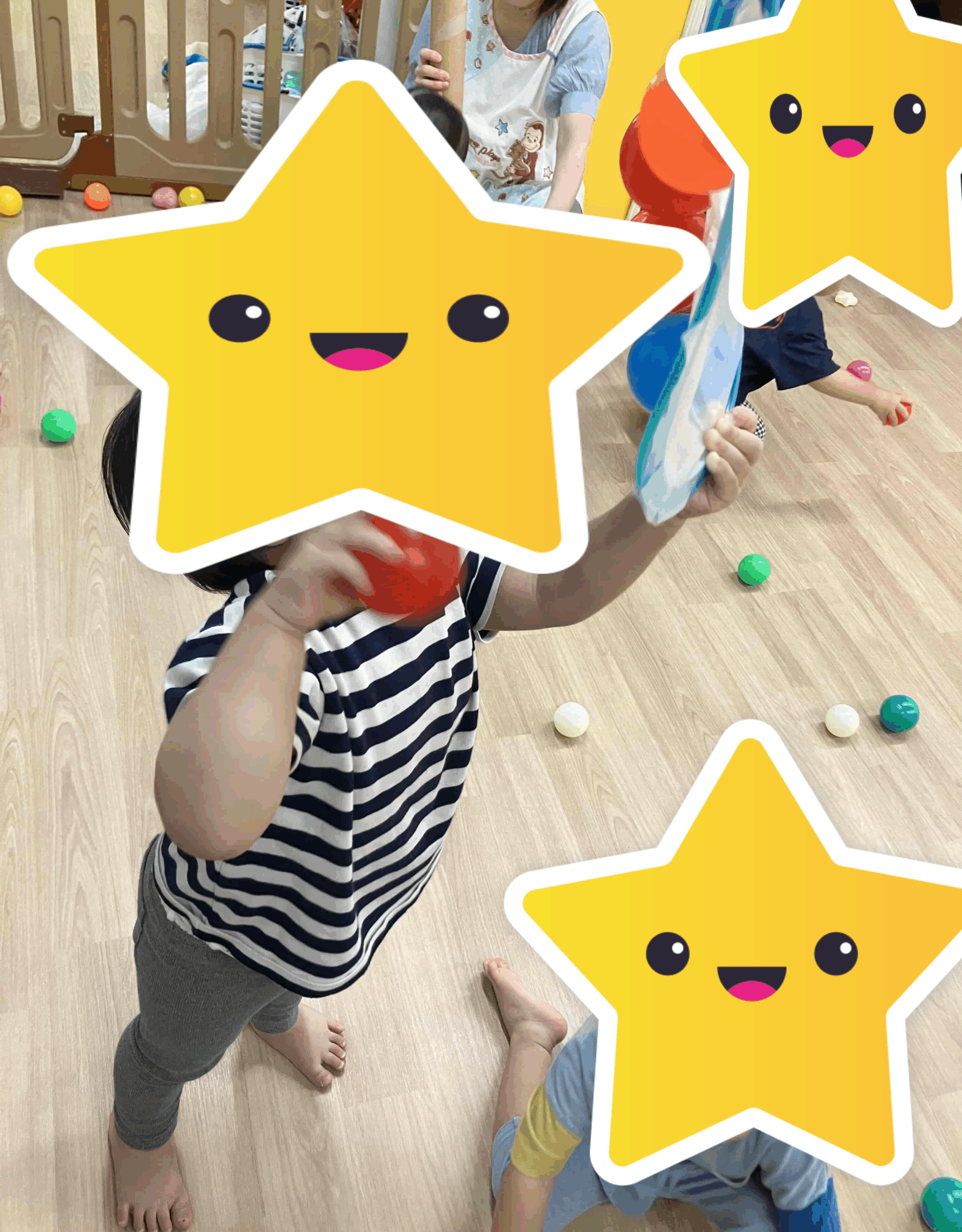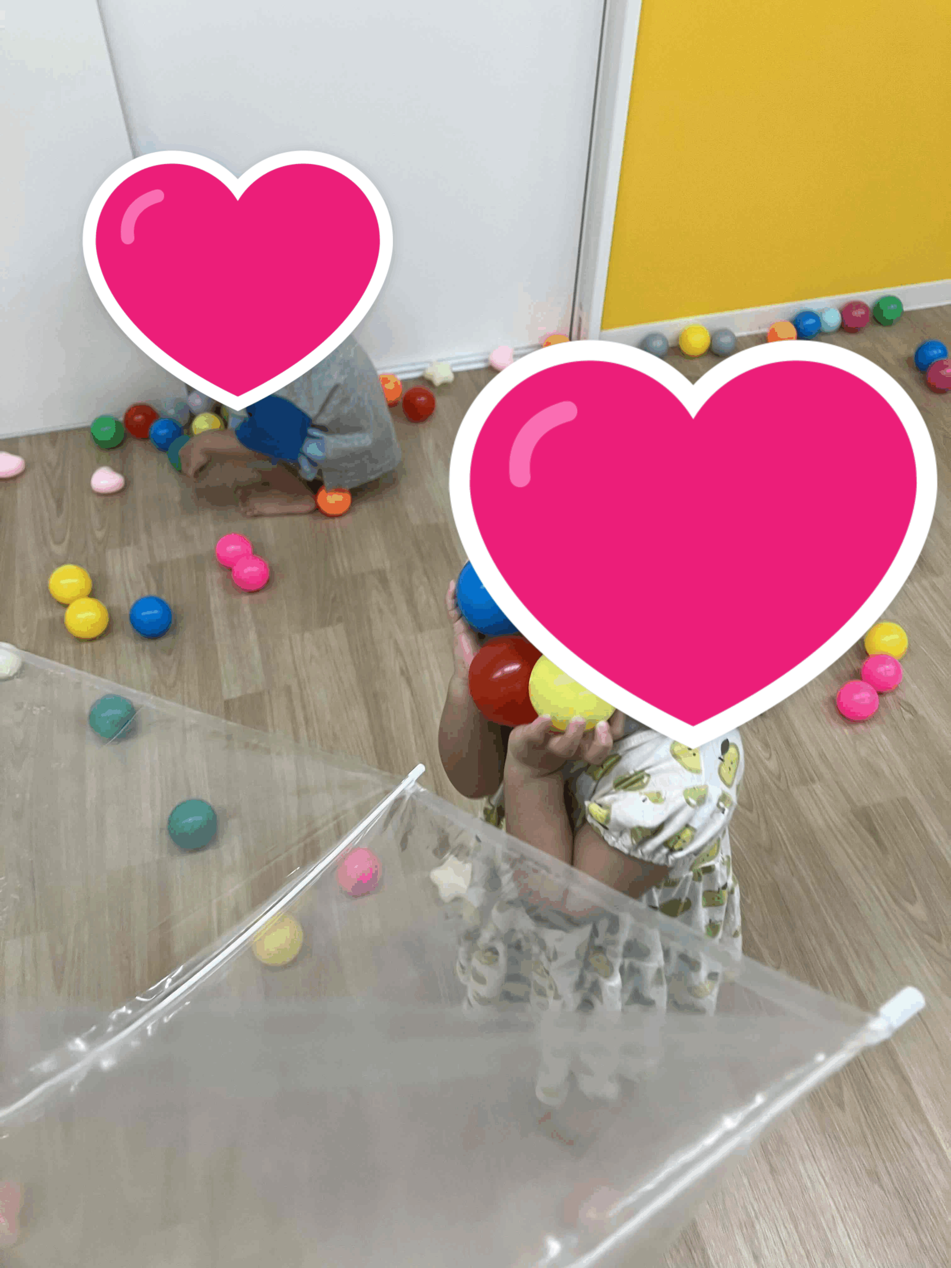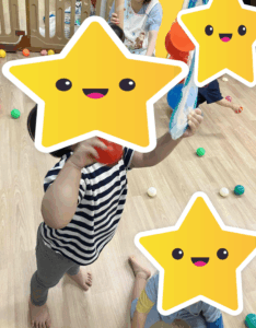 ボールプール用の小さなボールを傘に入れて遊んだり、