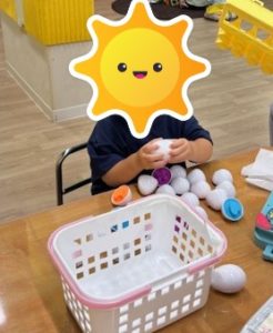 たまごの型はめ、練習中です!