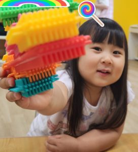 今日は特にペッタブロックが大人気でした。お友だちが作っている様子を見て、学び、同じ様に作る姿も見られましたよ!