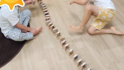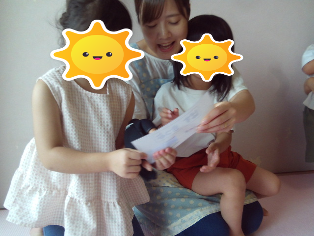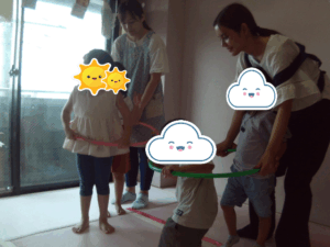 バスごっこ🚌 ワクワク 2025.08.06 こんにちは😊 バスごっこをしました🚌 「大型バスに乗ってます♪切符を順に回してね♪」の音楽に合わせて切符を隣のお友達に回している所です。優しくそっとお友達に回していました😊 後ろまで切符が回ると、フラフープをバスに見立てて隣のお部屋まで移動しました。バスはお友達と二人乗りにしました。楽しいな☆彡 やまもと