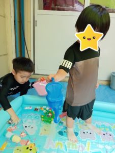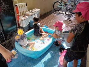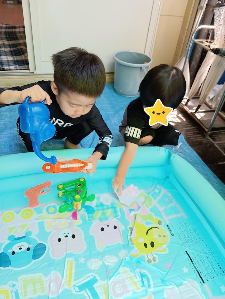 火曜日のりぼん りぼん 2025.08.06 こんにちは! 8月5日火曜日のりぼんは水遊びをしました。 午前は今年初の水遊び! 初めは恐る恐る水に触れていたおともだちでしたが すぐに慣れて大はしゃぎで遊びました(*^-^*) 今日の帰りの会の読み聞かせは 早く来ていた午後のお兄さんが読んでくれました📚 午後は水遊びの前にサーキットで体を動かしました。 おやつを食べてから水遊び開始です! スタッフに水をかけてとっても楽しそうです(*^-^*) 気温が高くとても暑い1日でしたが 涼しく楽しく過ごせたりぼんでした。 りぼん