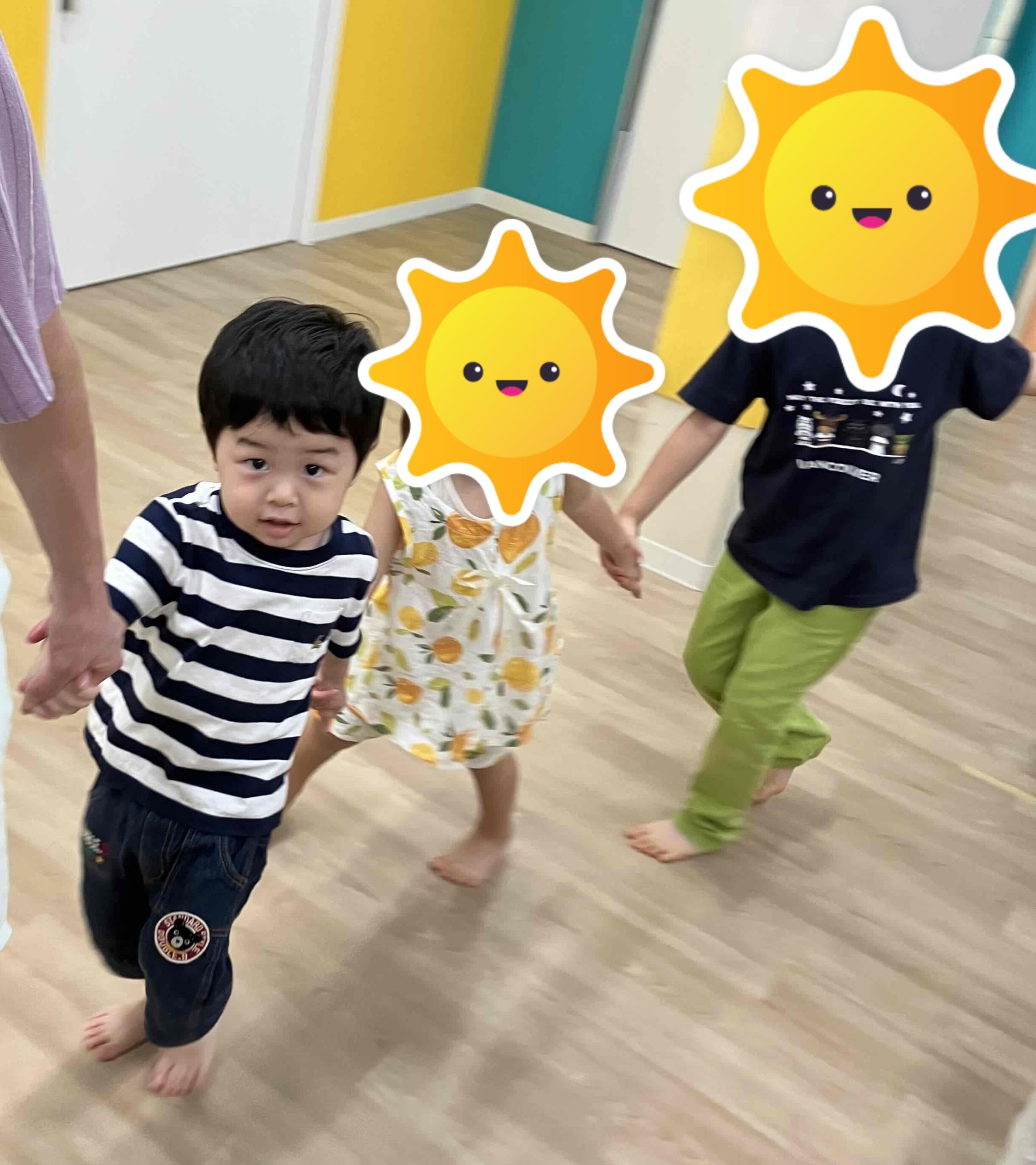 今日も午前中の活動で輪になる遊びをいましたよ。
