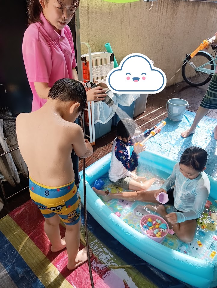 木曜日のりぼん りぼん 2025.08.07 こんにちは! 8月7日木曜日のりぼんは サーキットと水遊びをしました! 水遊びをする前にサーキットで体を動かします。 おやつを食べてから水遊び開始です! お天気があやしくドキドキしましたが すっかり晴れて気持ちよく水遊びをすることができました(*^-^*) おともだちやスタッフと水をかけあい大はしゃぎのりぼんでした。 りぼん