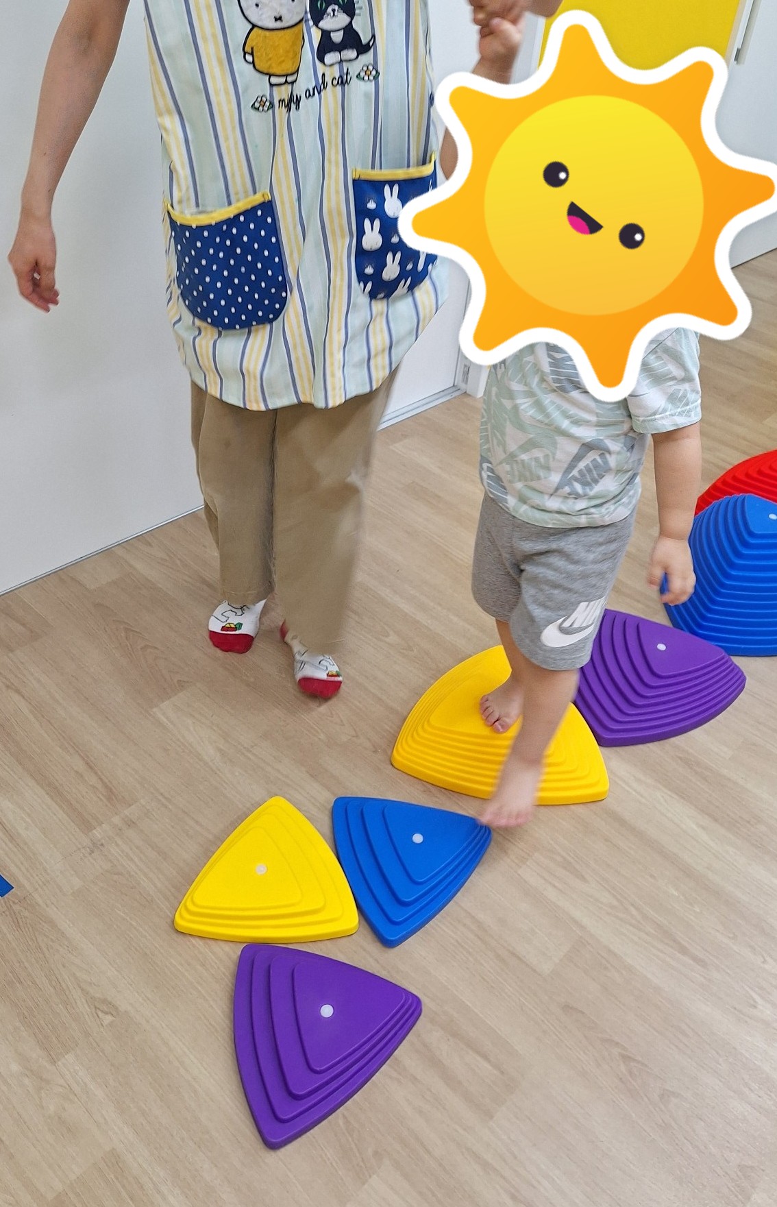 はしごではスタッフの手を握りバランスをとりながら、棒の上を歩いたり、淵の部分を歩いたりできましたよ✨