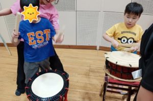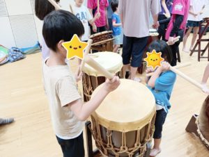 体を動かしたあとは和太鼓に触れる時間もありました。