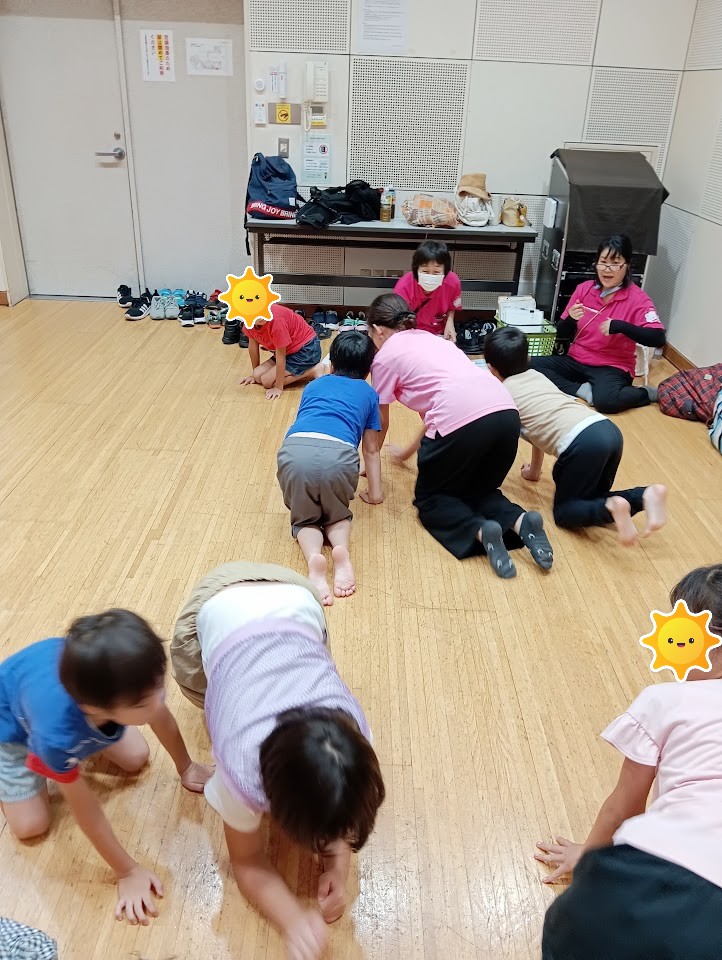 太鼓の音やリズムに合わせて大きく歩いたり、走ったり