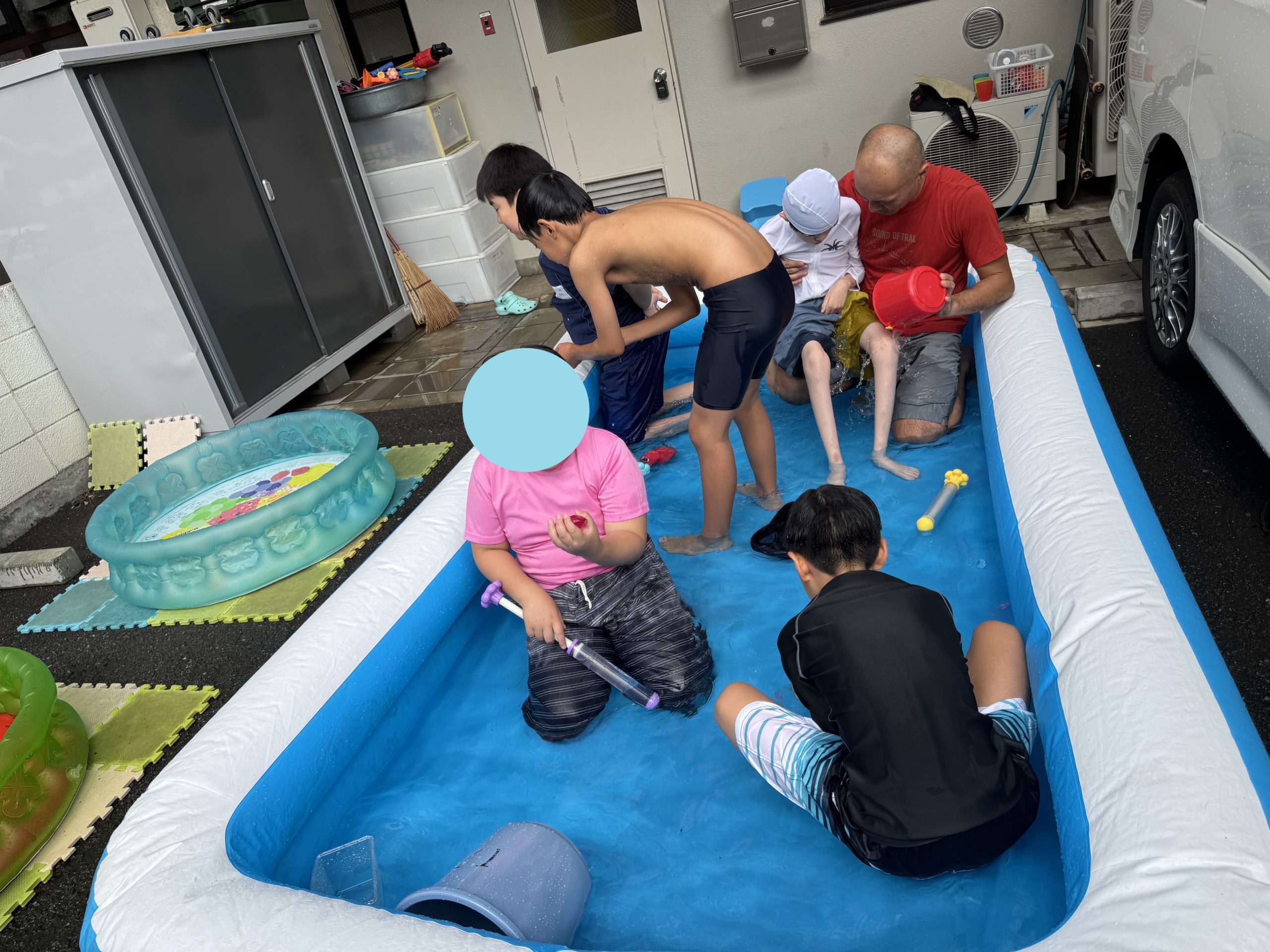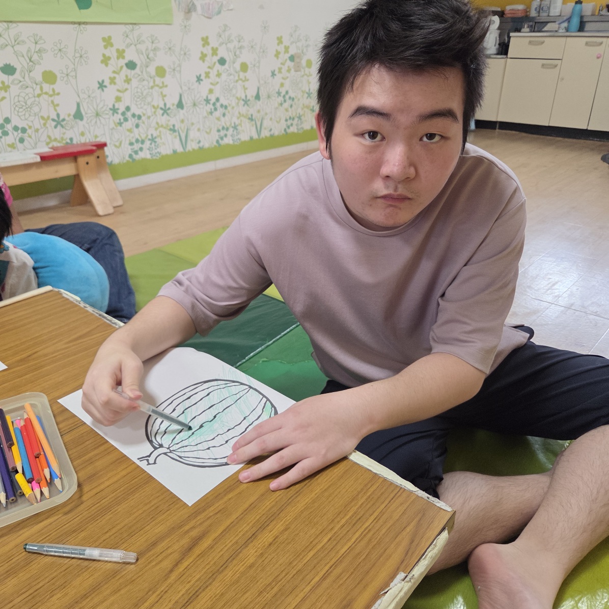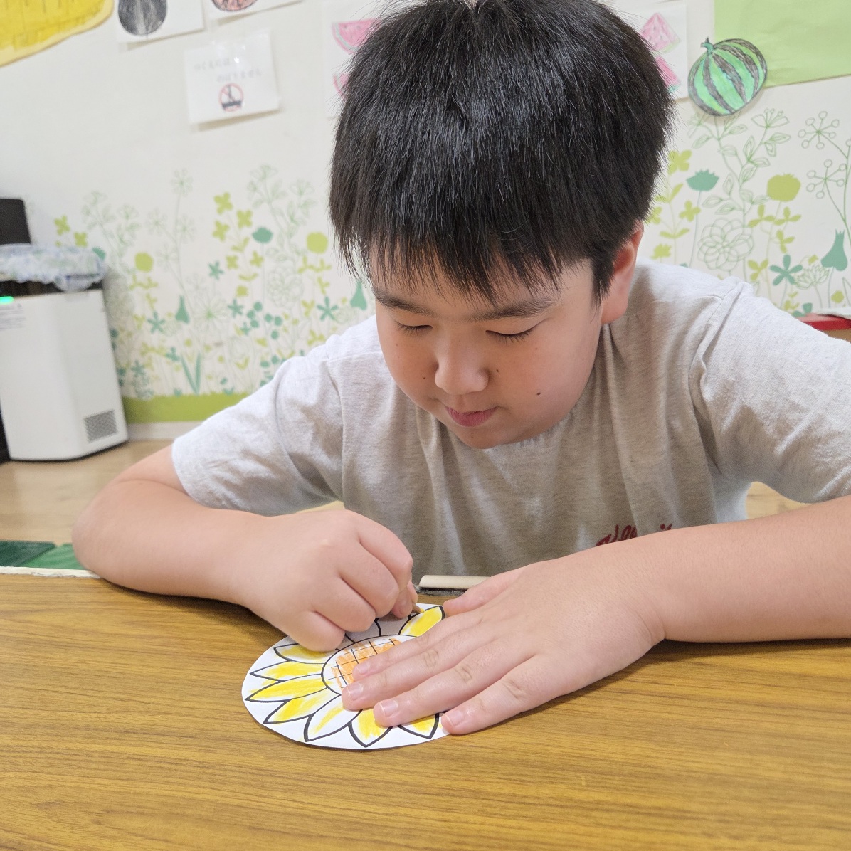 ひまわり🌻スイカ🍉制作のあとに水遊び☆ りぼんU 2025.08.19 今日は、ひまわりとスイカの制作をした後に、水遊びを楽しみました✨!! 制作では、ハサミが使える子は、色塗りしたものを自分で切り抜いたり、練習もしながら行っています✂✨丁寧にこだわってキレイに塗ったり、筆圧強めに塗ったり・・・個性が出ます😊💮 水遊びでは、ざぶざぶと頭から水を被って大笑いしながら、ダイナミックに遊んでいました(笑) りぼんU