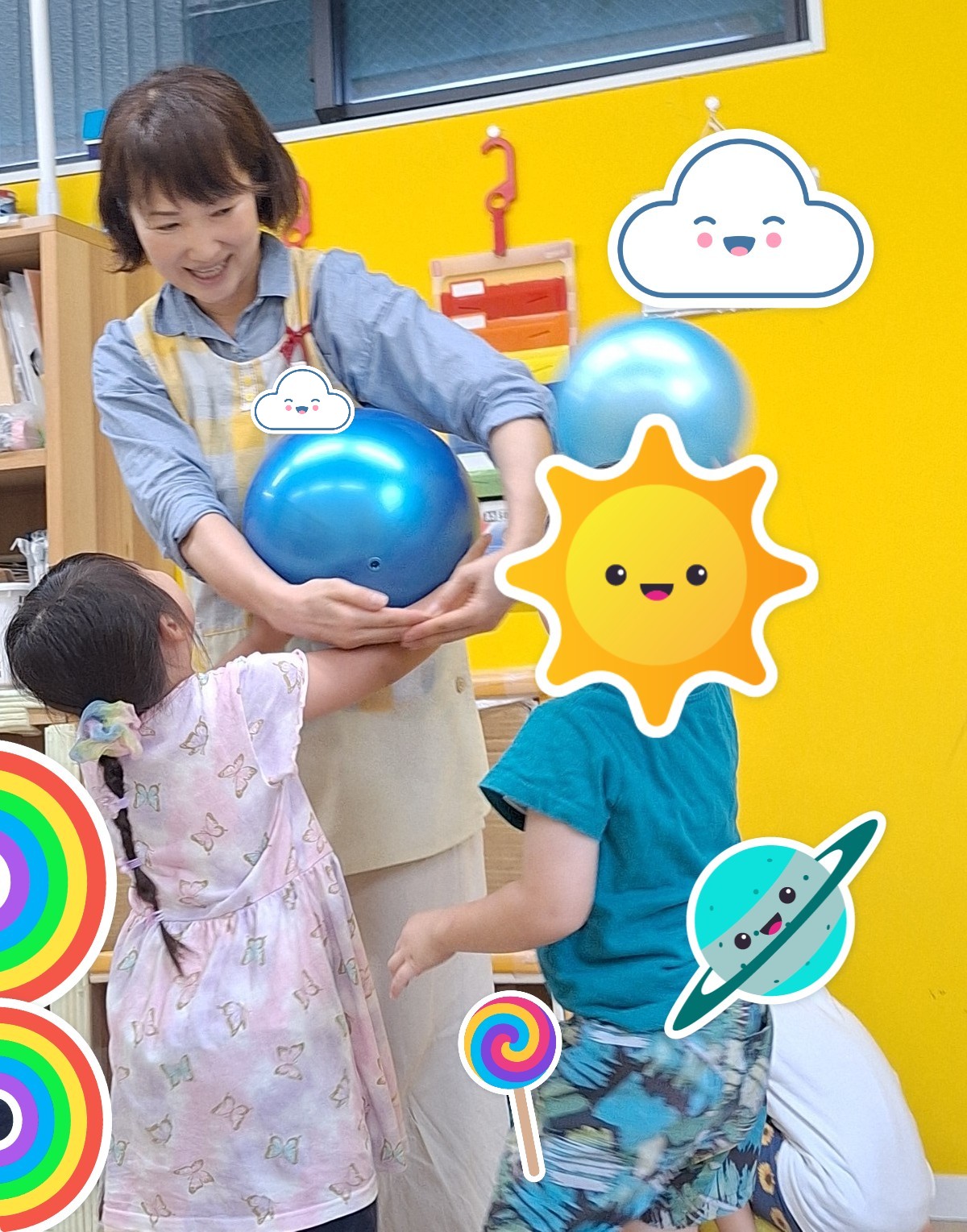 その後はボールと風船遊びをしました。キャッチボールをしたり、風船を飛ばして体をたくさん動かしていきました。