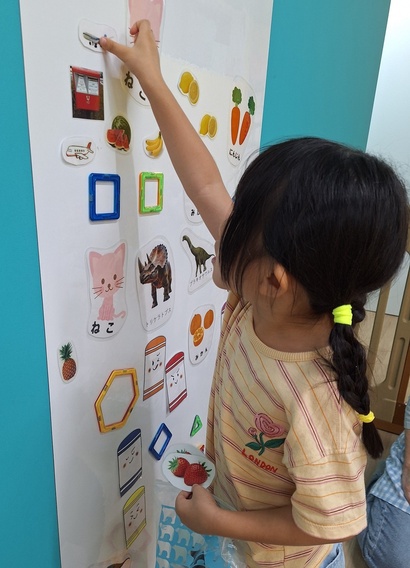 午後は個別とコーナー遊びをしました。コーナー遊びでは、お絵描き・パズル・磁石・レゴブロックをしましたよ。