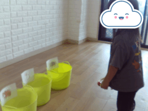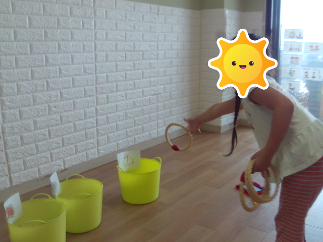 動物輪投げ ワクワク 2025.08.20 こんにちは! 椅子に座れるかなゲームの様子です↓ 曲が鳴っている間は椅子の周りを歩き、曲が止まったら椅子に 座るというゲームです🎵 曲が止まると、空いている椅子を探して急いで座る姿がありました(#^^#) 今日のサーキットは、動物輪投げでした。 指示されたところ(動物のイラストが貼ってあるバケツ)に輪を投げ 入れました🐰 狙いを定めて投げ、輪が逸れて入らなくても再度挑戦する意欲的な姿が 見られましたよ! せんかわ