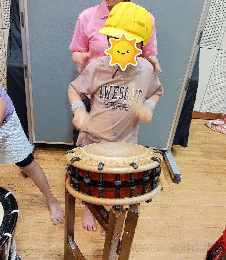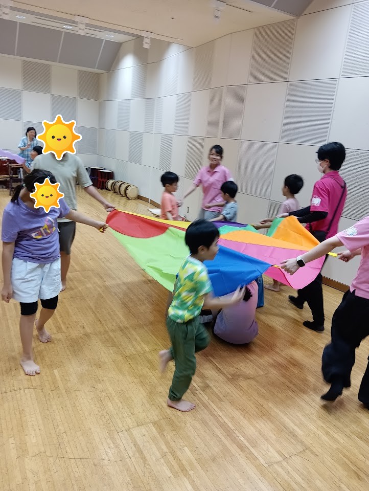 太鼓を叩いたり、太鼓の音に合わせてパラバルーンを楽しみました!