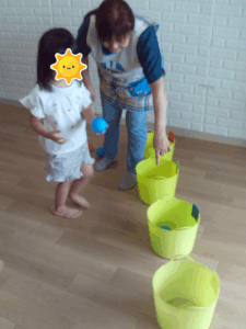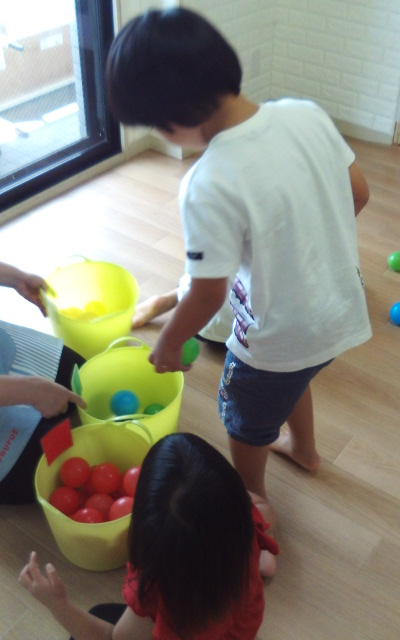赤・黄色・緑・青の4種類のボールを同じ色が