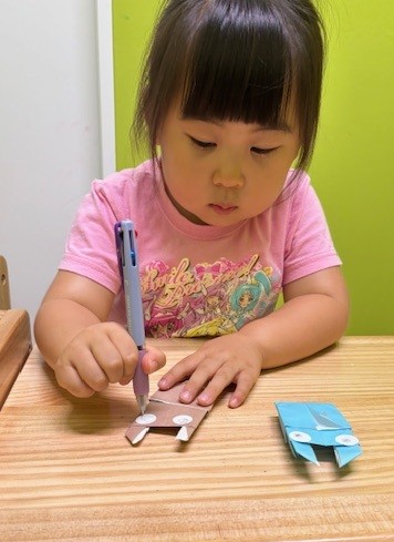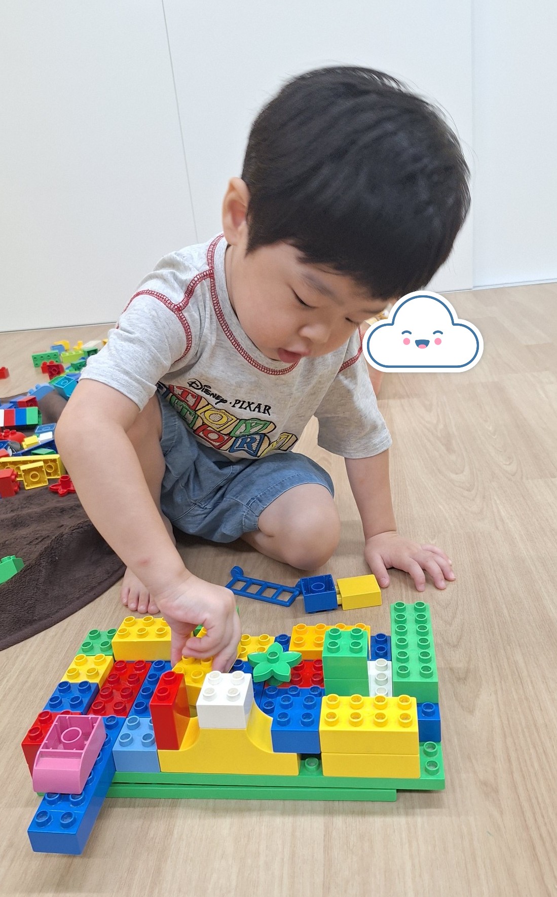 キャタピラを使って、色々な遊びも取り入れています。今日は、電車ごっこをしたり、トンネル遊び、お家ごっこ、かくれんぼなどに発展させて楽しんでいきました。電車ごっこでは、お友だちと一緒に走ったり、一人で色々なスピードを出して運転手さんになりきったりしていました。